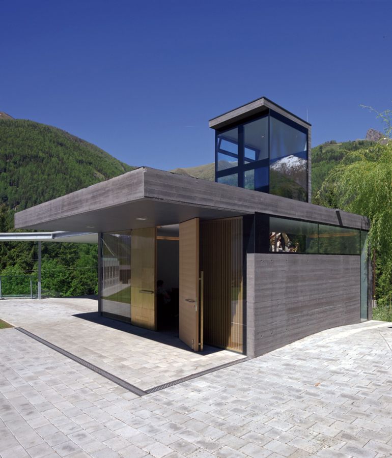 Das viergeschossige Gemeindezentrum begrenzt den neu formierten Vorplatz im Nordwesten und richtet sich nach der Friedhofsmauer aus. In den beiden Untergeschoßen finden Feuerwehr, Bergrettung und Bergwacht ihr neues Zuhause. Das Erdgeschoß gehört der Gemeindeverwaltung, ein Stockwerk darüber sind Sitzungszimmer und Gemeindearchiv untergebracht. Die zweigeschossige Fahrzeughalle der Einsatzdienste liegt zur Gänze unter dem gepflasterten Vorplatz. Die Architektur des Zentrums setzt nach außen hin auf ein selbstbewusstes, klares Erscheinungsbild. Sie folgt damit dem Gestaltungsprinzip des benachbarten spätgotischen Widums, das gerade durch seine schlichte, aber im Detail präzise Bauweise besticht. Detailgenauigkeit und handwerkliche Präzision zeichnen auch das funktionale Raumprogramm aus.